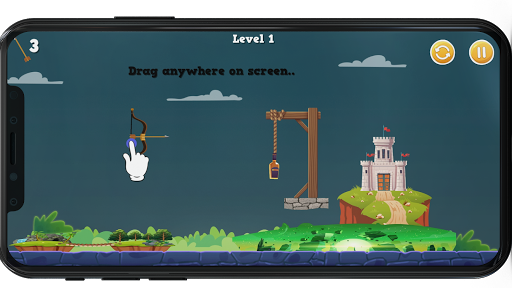 Enjoy this adventure action game and have unlimited fun moving down the levels and showing off your shooting skills to your adversaries and allies. One rule: Aim, release the bow, cut the rope, knock down the bottle, enjoying it breaking. Different levels: As you level up, the difficulty of the game changes and your archery skills will be tested even more.