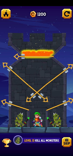 Solve puzzles and rescue the hero, collect all the treasures, kill monsters and save the princess. Pull the pin in order to destroy your enemies by pulling lava and poisonous gas into their puzzle units. Cut the ropes in order to rescue the princess from the scary monsters.