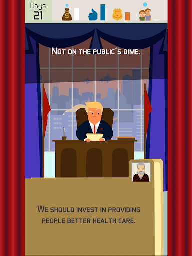 I Am President will test your wits to see if you are fit to become a leader of the country. How long can you stay in power before you are overthrown by the people. Even if the people love you, can you avoid some “accidents” that will cut short your presidency reign?