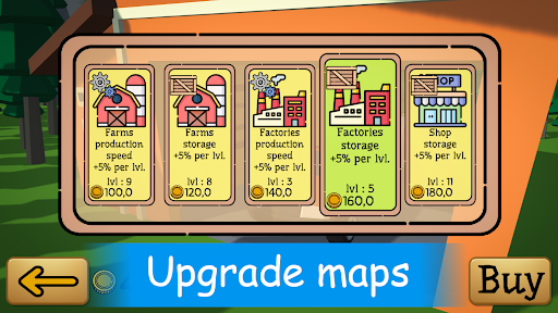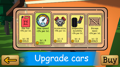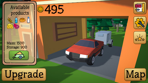 By selling goods, you get coins that can be spent in the garage to improve cars and factories. And also for the purchase of new cars.