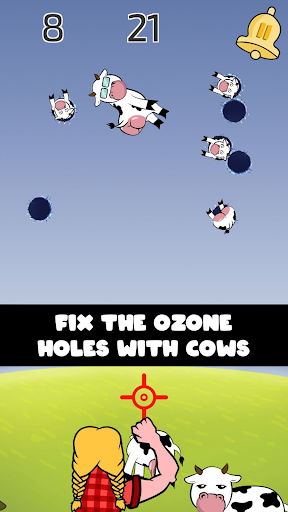 With the help of the finger that distinguishes us as intelligent primates, you will help Greta to throw the cows into the ozone holes.