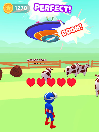 The gameplay is quite easy. Tap on the screen and hold to make the stickman superhero move in the arena. Swipe across the screen to evade the concrete blocks, pieces of earth and other objects that the tap titans throw at you.