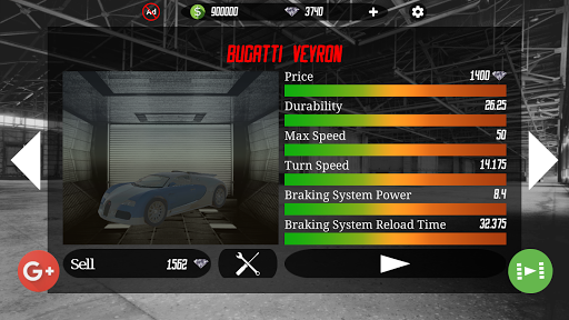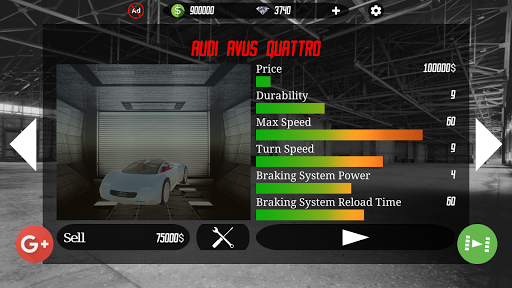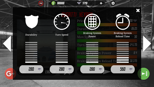 Buy, sell, upgrade more than 10 cars, from cheap to premium. Each car has its own characteristics: strength, turn speed, brake system power, brake system reboot speed.