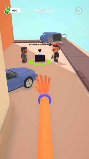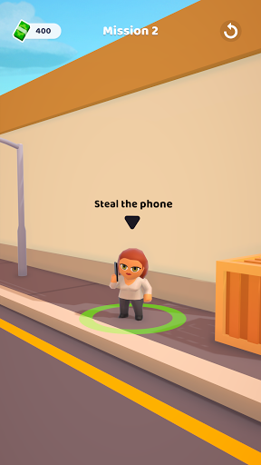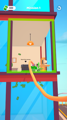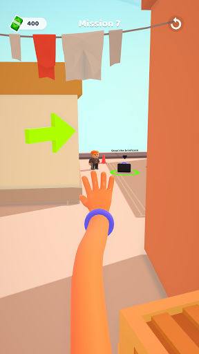 Enter the room by extending your arm and catch the signed object so that you can steal it. In the meantime, don't touch the other people in the street so that they don’t become aware of you. As you level up, you’ll experience more obstacles and valuable items.