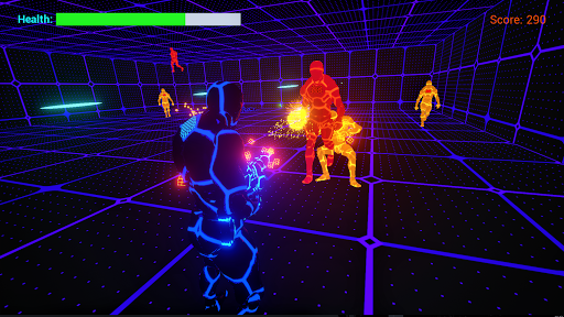 The Cyber Arena has a cyberpunk futuristic style, and, like all the game textures, changes his color and intensity all the time. The soundtrack it's composed by electrifying and alucinating musics, making the game extremely fun and frenetic to play. A lot of fun, the perfect game to compete with friends, and with all the world! Download now and destroy as many neon robots as you can with your Cyber Gun!