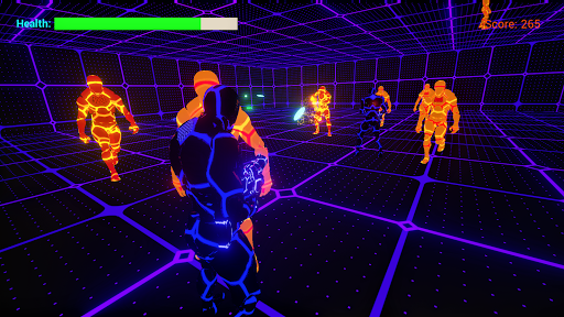 Cyber Gun - Neon Robot Survival is a TPS shooter (Third Person Shooter), in which the character is in a digital arena and must survive through several waves of neon robots, shooting on them with a cybernetic laser gun and upgrading it and himself during the gameplay, becoming stronger and more powerful every turn. The neon robots tracks the player all over the cyber arena, and gets faster wave after wave, trying to reach the player to drain his cyber energy. Survival is the main goal, and for that the player can use itens that heal his energy, even if he dies to the neon robots.