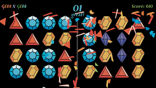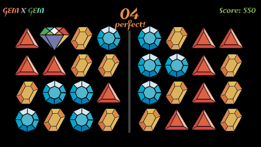 Gem X Gem is a simple, fast paced gem matching and coordination game.