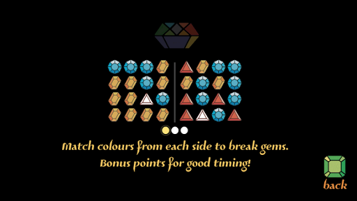 Race against time to break coloured gems: tap two matching gems, one from either side of the screen at the same time to break them.
