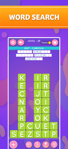 Stay entertained and train your brain with Word Searching Puzzles! Improve your vocabulary and challenge your brain with this stimulating word search game. Search and find all hidden words to advance to the next level! Seemingly endless entertainment with more than 1000 exciting levels, available in over 30 languages. Whether playing to relax and unwind after a busy day, or to stay sharp during idle time, you’ll love this intellectual word game.