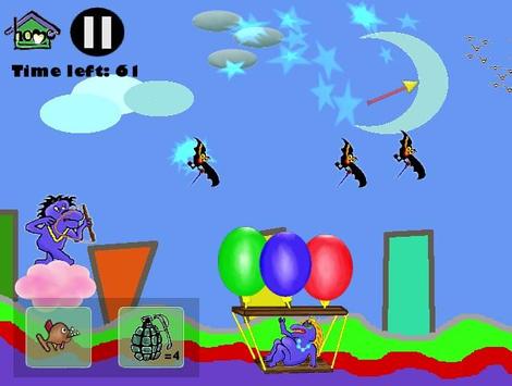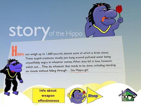 Your gold-digging girlfriend Princess Sandra is a horrible woman. She treats you terribly and steals from friendly animals. But now, she went too far: these friendly animals just got angry! They want revenge and are attacking her like crazy. You have to come to her rescue. Safe her by shooting down the animals one by one. If Princess Sandra falls, you will loose the will to live yourself. Why? Because you are a stupid Hippo, blinded by love. So protect your gold-digger no matter what and keep the love alive!