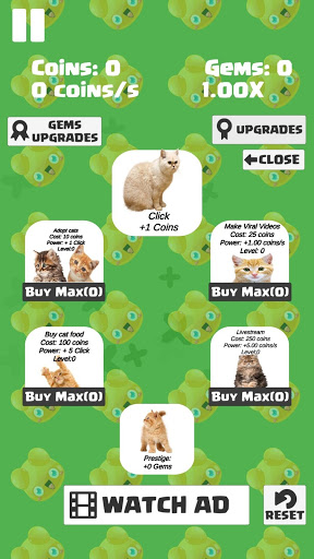 It's a race for coins! Time to earn your honor by making money and going down in history for your loyalty! Race your friends and beat them by upgrading as much as possible. Adopt a lot of cats and raise them, then make profit to buy gems and get sponsored by big companies which will give you a fat boost!