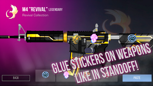 - Knock out stickers, inspect them in 3D, and glue them on weapons;
