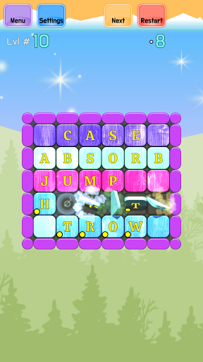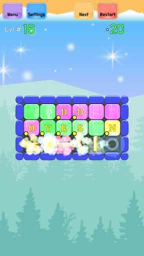 There are 5 game modes that users can play, starting from a single word, and going up to 5 words. Each word should be placed at a different line. We don't use too sophisticated words, but multiple solutions are accepted, so you can allow your imagination to run free, as long as we have it in our vocabulary. If we are missing certain words, please contact us and we will add them. The board is shuffled at the start, the user needs to slide the tiles until each line is forming a valid English word.