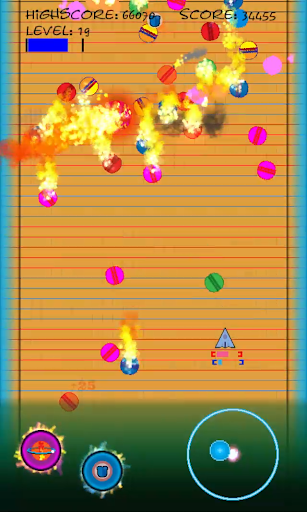 Your goal is to evade the falling balls. Watch out, because each ball may have different qualities. To help you in your quest, you can collect power ups for a shield or beam. The shield protects your space ship from any damage. The beam allows you to blast the balls away from your ship in different directions. However, the time you can use these tools is limited!