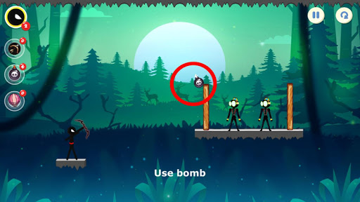 Your stickman archer has a large arsenal of different weapons: bows and arrows, spears, shurikens, bombs and ballons