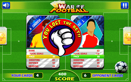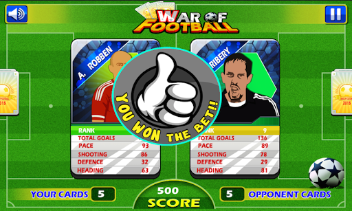 Play the First Free Football Trump Card game on the android. Select the Bet