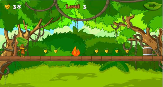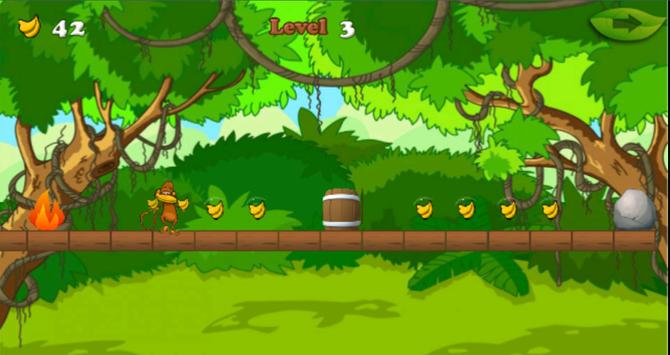 The baby monkey is very hungry. So he is finding food in the jungle. But the jungle is very large and danger for this monkey. Some monsters are in the jungle. So you must help the monkey for jump and running out of the jungle and eating more bananas