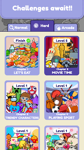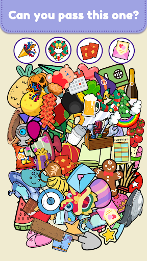 Find all correct objects lying tricky among the others. Complete tasks to unlock new colorful levels! Train your concentration and attention with those brain teasing puzzles but don't forget to have fun and feel good too!