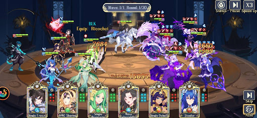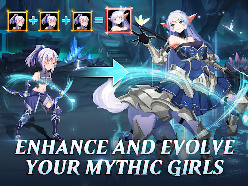 Wisely set up your Mythic Girls team. There are 6 careers of Mythic Girls and you can deploy them into the 3 3 team. Front-row and Back-row position matters. Skills match is important, and merging skills will surely greatly enhance your team's power. Turn-based battle also needs your wisdom.
