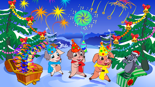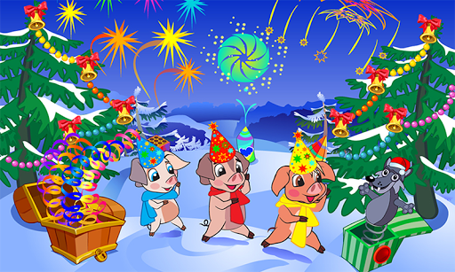 Once upon a time there were three merry Piggies who lived in the forest. Short before the winter came, they had build three stable houses for themselves. The Piggies felt happy and safe in their new warm homes. Meanwhile, the New Year's Eve was approaching. And what is the holiday without gifts? So, the Piggies wrote letters to Santa Claus with their Happy New Year wishes...