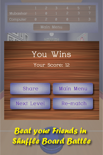 If you like Ultimate shuffle board, 3D shuffle board, shuffle bowling, shuffleboard then you are going to love this game. It integrates very real physics engine and very realist graphics. Single player can play with computer & 2 player is also supported. You can compare scores with your family and friends over Facebook as you do in your favorite games like candy crush and other top social games.
