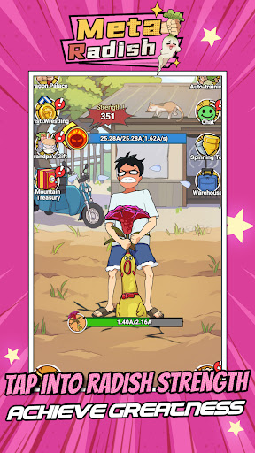 Meta Radish is a highly addictive decompression and casual radish-pulling mobile game. You need to increase your strength and quickly pull out various strange tools to experience the life of muscular struggle. Come and download the game now!
