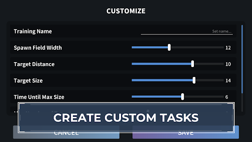 There are over 30 training tasks to choose from, which will all help you practice different areas of your aiming skill. All of the tasks are highly customizable - from the size and position of the target to the game speed.