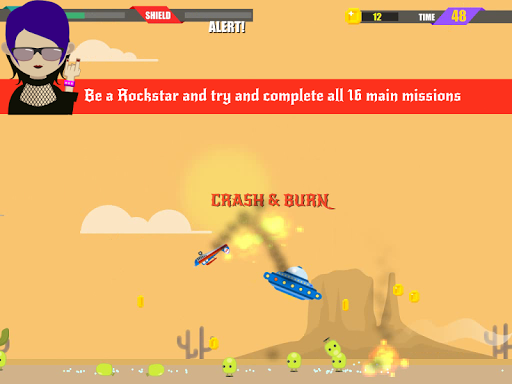 Time to show off your flying skills in this action packed plane combat game. Its Rockstars Vs Aliens in the ultimate arcade shooter featuring cool planes, upgradeable weapons, explosions galore and the coolest rockstars you could meet. Welcome to Rockstar Alien Killers!