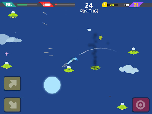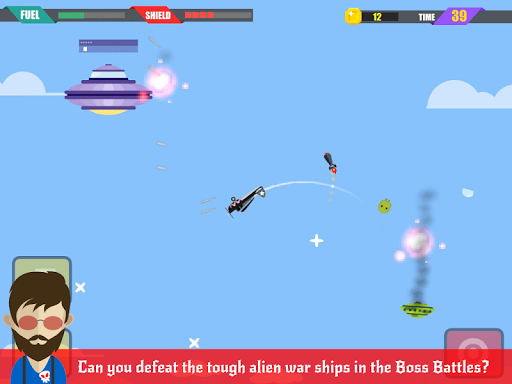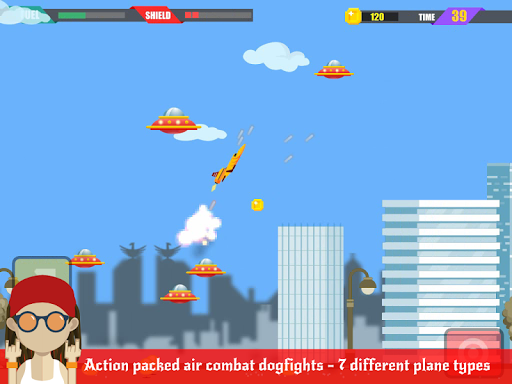 Theres 7 different plane types to choose from - biplanes, jets and even a couple of blimps! Take to the skies over the desert, countryside, cities, mountains and even fly inside dangerous caves. Simple controls means you'll be doing loop-the-loops around the alien craft while setting fire to their mothership in no time!