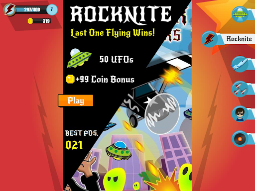 * Rocknite game mode - Take on 50 UFOs and see how long it takes before you Crash n Burn.