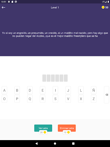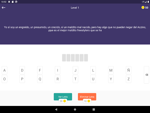 設定セクションでは、音声を無効にするのやアクティブ化するなど、変更できるオプションをいくつか検出できます。その一方で、あなたが自分自身がいくつかのフレーズで立ち往生していると思っていることをいくつかの時点で演奏を続けるために、チップを買うことができるセクションもあります。その一方で、韻の戦いを推測するという状況で自分自身を見つけることは、あなたを助けるためにあなたの友人と共有することができます。