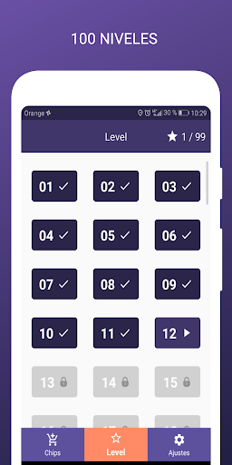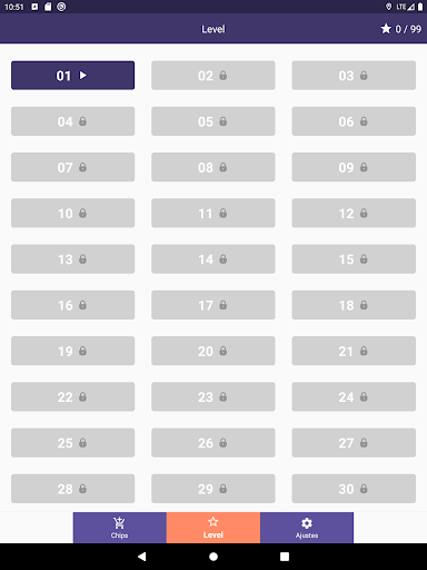 アプリケーションは、インターフェイスの下のメニューで見ることができる3つのセクションを持っているため、韻を推してください。センターセクションでは、ゲームの終わりに到達するために完了しなければならないレベルのそれぞれのレベルを持っています。