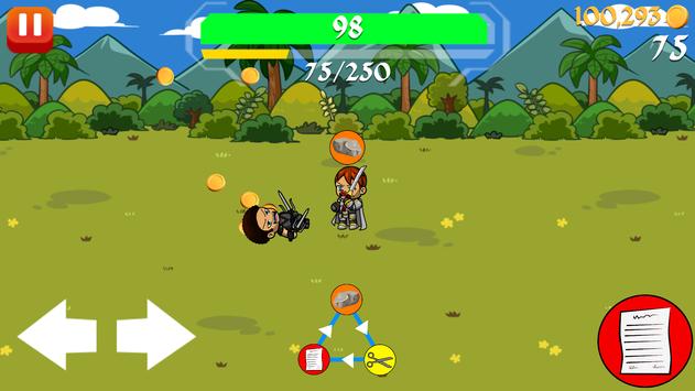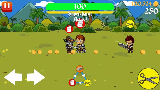 Survive as long as you can from endless waves of enemies in Roshambo World. Switch between Rock, Paper, and Scissors to get the edge over your enemies and destroy them before their numbers grow to large. Watch your back as enemies deal extra damage when attacking from behind! Purchase upgrades in the shop to make your character stronger to help you survive longer. Purchase arrows to destroy your enemies from a distance. Purchase walls to block your enemies from passing for a period of time. Over time, build up your supercharge, a powerful ability which makes your character grow in size and strength to eliminate your enemies with ease.