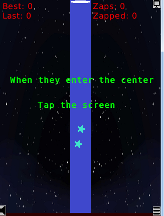 Test your reflexes in this tap it to Zap It arcade game! Stars, Bananas, Melons, and other objects will fly across the screen. When they reach the center simply tap your screen to Zap It! But if you Zap It too soon before they are in the center you lose. Let them crossover the center you also lose. Zap It just right to show off your skills and unlock all the skins!