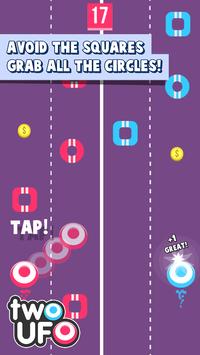 Are you ready to take the challenge and collect all the circles and avoid the squares? Just tap the screen and it will switch lanes! Don’t tap to late or you will miss a circle or maybe you'll even bump into a square!