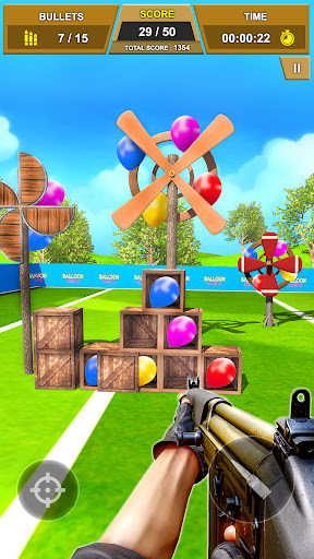 Test your shooting skill through the balloon shooting games. Shoot all the air balloon in a single shoot. Compare your gun shooting score with friends to see who can reach at the best score of 3d games. Get a reward on completing each shooter games level. Earn in-game currency while you playing and cash them on purchasing the latest 3d games guns.