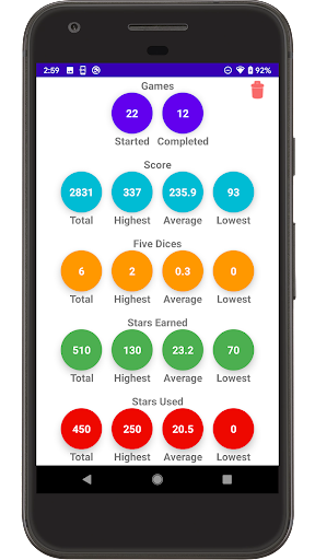From the makers of the popular Five Dice! comes Five Dice Stars - a challenging YAHTZEE* style game where you can earn stars that can be used to improve your game scores.