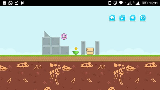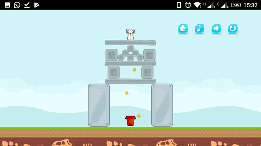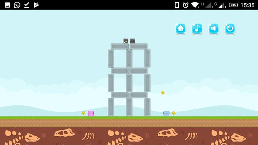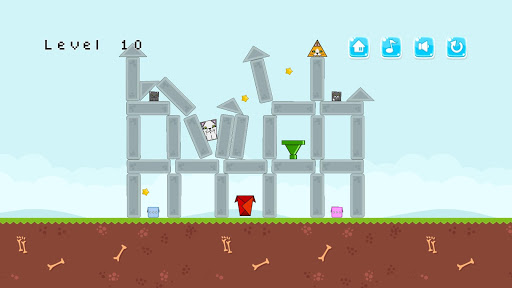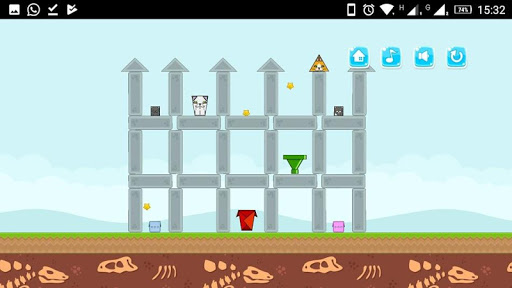 The game consists in match the cats shapes with theirs respective boxes. The gameplay is based in physics simulation. You shal use the objects wheight and gravity and to move elements along the screen. Touch to pop some of the solid objects.
