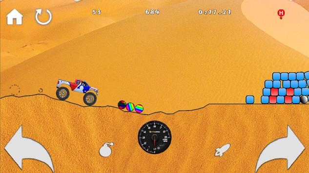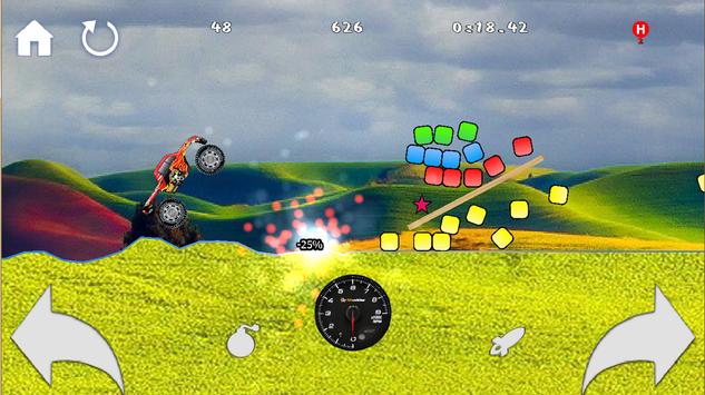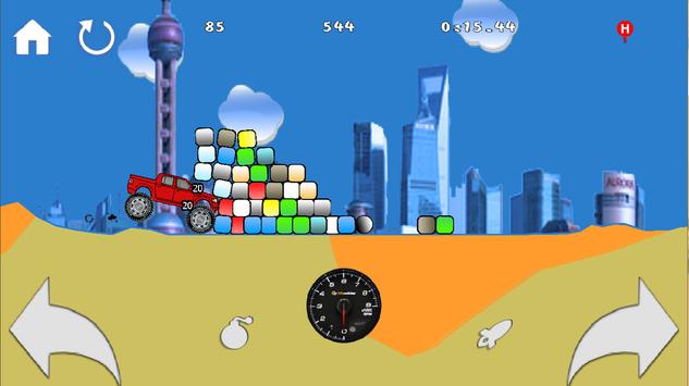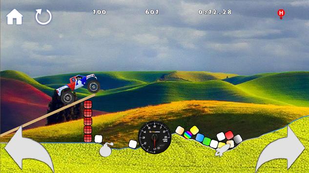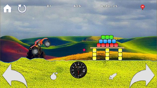 Uneven road and placed obstacles are not allowed to go fast. Disassemble the obstacles or jump over them.