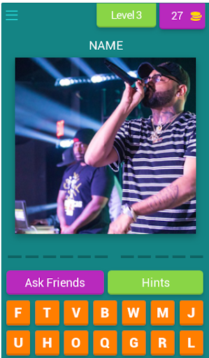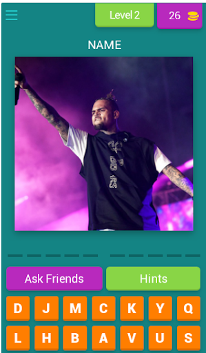 GUESS THE STAGE NAMES OF YOUR FAVOURITE ARTISTS. FUN TRIVIA/WORD GAME TO HELP GUESS THE ARTISTS FROM SOME OF THE BIGGEST GENRES OF MUSIC, R&B, HIP-HOP, DANCEHALL. 30 plus levels