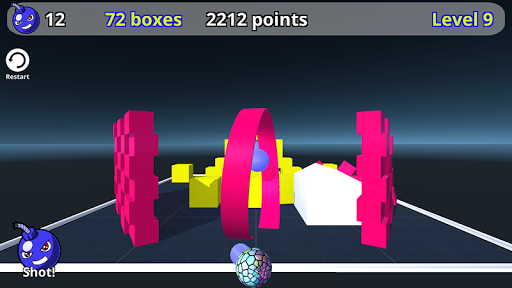 Shoot a bomb shaped like a ball and destroy the buildings and geometric figures, think about how to do it, you have limited bullets.