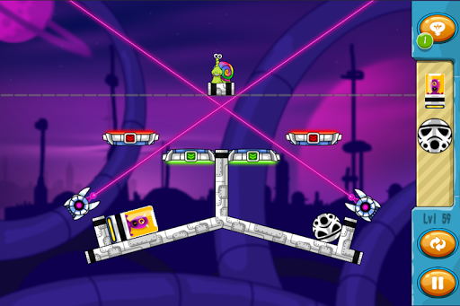 More obstacles mean more options as you can rotate objects and throw them in random order to develop new strategies. You will even use active objects like magnets and ventilators while avoiding or utilizing different surface types like ice or slime.