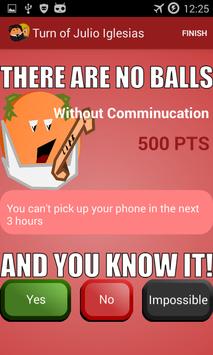 ¡Beware! This game is merciless. Aleatory Squad is not responsible if your life changes tragically when facing to challenges that will prove your phisical and moral integrity. Do not let it fool you trying to win the game and take into account that some challenges might have impredectible consequences. Good luck, fools.