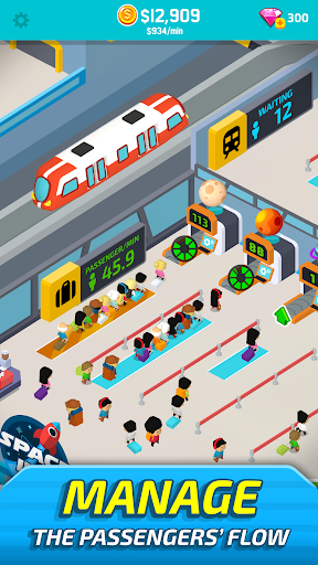 - Spend your money to upgrade the gates, rail transit, and rockets to ensure faster services.