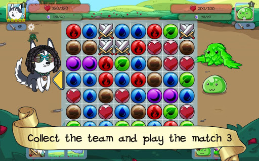 A unique fusion of genres virtual pet and match3. Your pet acts as the commander of a detachment of beasts who are going through adventures. You collect a unique team, and go through different levels in the match3 game.