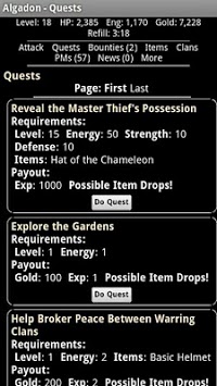 Algadon is a medieval/fantasy web game (fully mobile optimized) in which players can perform quests, battle other players and monsters, place bounties, and more.