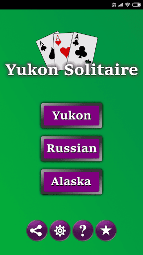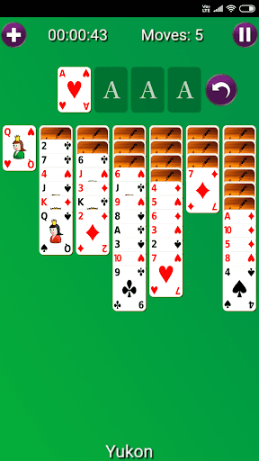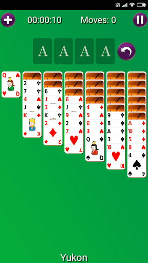 Yukon is a type of patience game played with one deck of standard 52-cards set which has no stock pile. All cards are dealt at the beginning and some of the cards are dealt face-down. Aim is to build four foundation piles up from Ace to King.