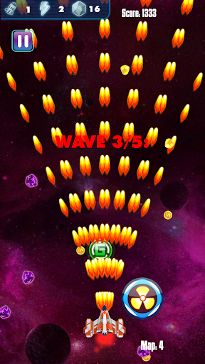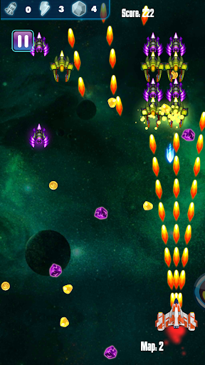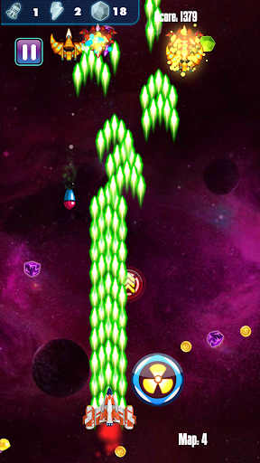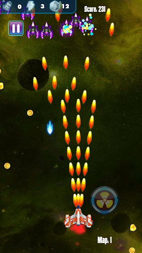 - Use coin and gem to upgrade or evolve your spaceship to fight evil enemies and alien invaders.
