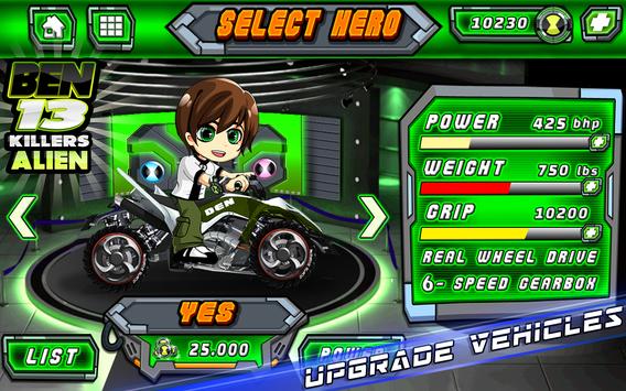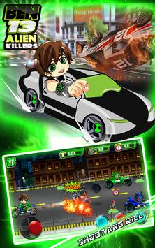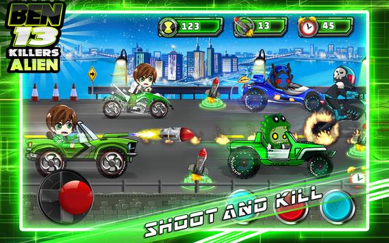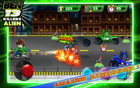 In the Alien Ben Road Battle, you can plays with the characters Alien Ben 10 omniverse You must collect the rocket and destroy the zombies enemies cars.