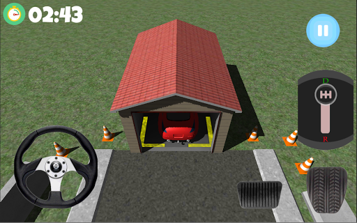 • Control your car with an on-screen steering wheel, acceleration pedal, brake pedal and gearshift.